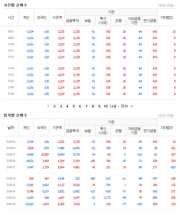 | 기관 | 금융투자 | 증권,선물,투자자문사 고유자산 |